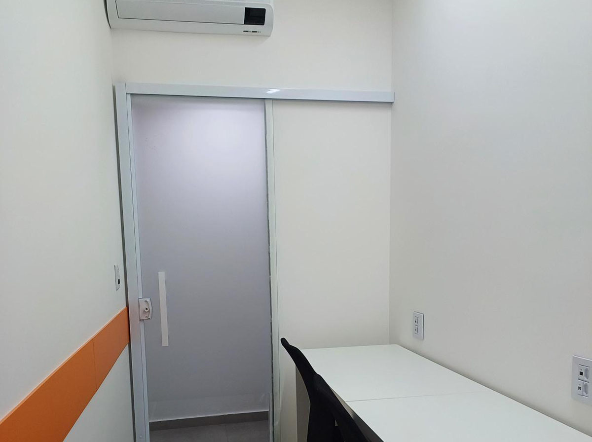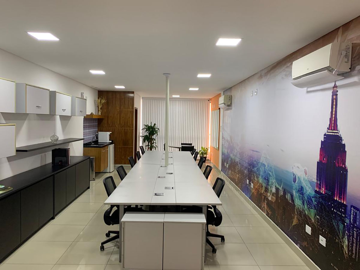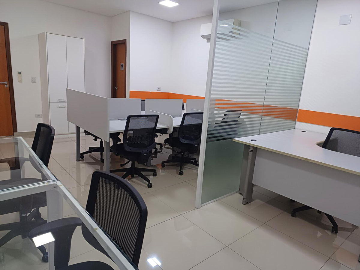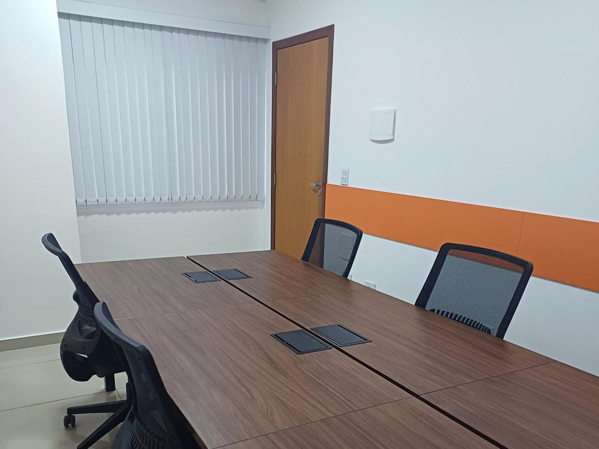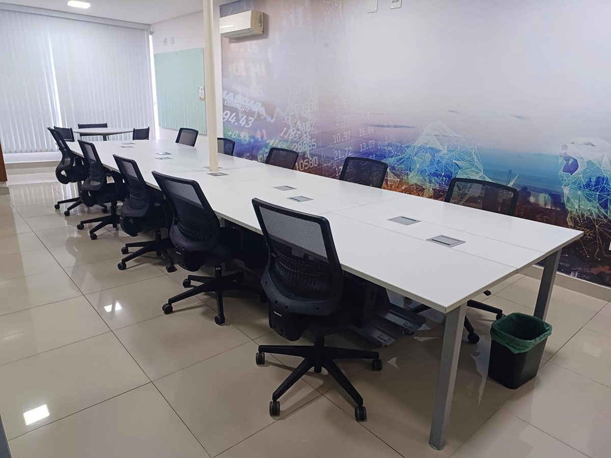 Banheiro exclusivo, internet wi-fi e cabeada redundante, mesa de reunião com 3 cadeiras, estações de trabalho, cadeiras, gaveteiros, armários e lousa de vidro